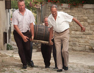 Tradicionalna manifestacija gdje se vrši "Izbor Župana Huma na leto dan", svečano otvorenje gradskih vrata, smotra narodne glazbe i plesa sjeverne i središnje Istre. Biranje župana Huma na leto dan svake se godine na Dan Huma na stari način bira župan. Bira ga jedanaest mjesnih sudaca, koji su izabrani na više godina. Biranje se obavlja kao u stara vremena. U dogovoreno se vrijeme sastanu suci, dotadašnji župan i stanovnici Huma i njegova 33 sela i zaseoka. Suci posjedaju uokolo velikog kamenog stola. Župan uza se ima župansku palicu, što je od nekad označavala vlast po uzoru na vladarsko žezlo davnih hrvatskih kraljeva. Novog župana izabiru između sebe tako da uzmu raboš - kratku drvenu palicu četvrtastog oblika. Obicno predlože dvojcu i naznače svakom jedan ugao na rabošu. Oštrim nožem ili kosirom urezuju glasove svakom kandidatu na jednoj strani raboša. Onaj ko dobi više ureza - taj je izabran za župana. Dosadašnji župan prebroji ureze i proglasi svog nasljednika. Novi župan biranim riječima zahvaljuje na časti. On će upravljati javnim radovima, brinuti se za red i čistoću. Rješavat će nesuglasice, nesporazume među stanovnicima i izricati kaznne neposlušnima koji narušavaju red u Humu i okolnim selima. Da bi izbor župana bio što svečaniji, djevojke obučene u narodne nošnje na drvenim pladnjima raznose svježe pečeni kruh, sir i vino. Djele to svim ljudima na gradskom trgu. Tu su već i glazbenici. Ples potraje dugo u noć. |